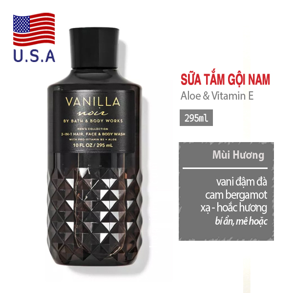 ++ Sữa tắm, gội đầu, rửa mặt 3 in 1 cho nam giới Vanilla Noir - Bath and Body Works có hương vani đậm đà, gia vị cam bergamot và xạ hương hoắc hương. bí ẩn, mê hoặc