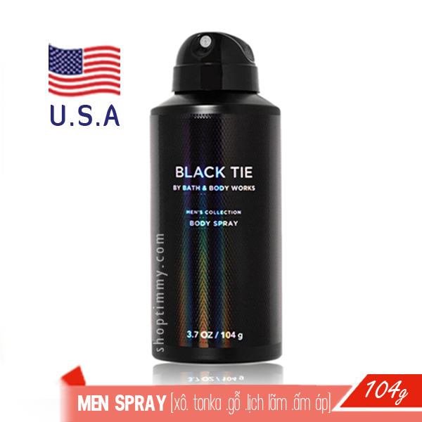 Xịt khử mùi toàn thân nam Black Tie - Bath and Body Works hương thơm cây xô thơm, đậu tonka đậm và gỗ đàn hương phong phú.