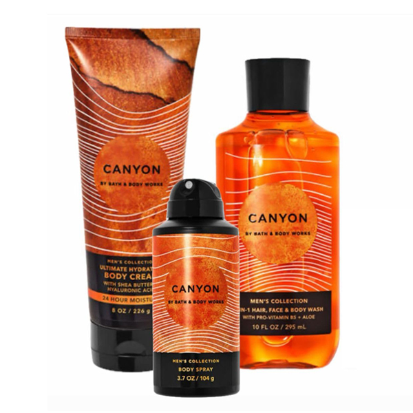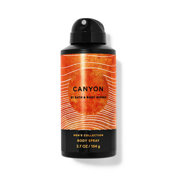 Xịt khử mùi toàn thân nam Canyon - Bath and Body Works mang hương mới mẻ, đầy khám phá của hạt tiêu đen, cát sa mạc và cỏ vetiver. Hương thơm Canyon ấn tượng và nam tính kết hợp khử khử mùi mồ hôi. Sử dụng vào buổi sáng, sau khi tập thể dục hoặc để làm mới chính mình trong suốt cả ngày.