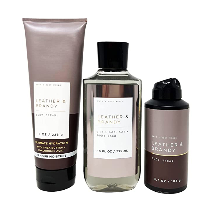 Xịt khử mùi toàn thân nam Leather & Brandy - Bath and Body Works có mùi da thuộc ấm áp, gia vị thơm, rịu brandy mạnh mẽ rất cuốn hút.