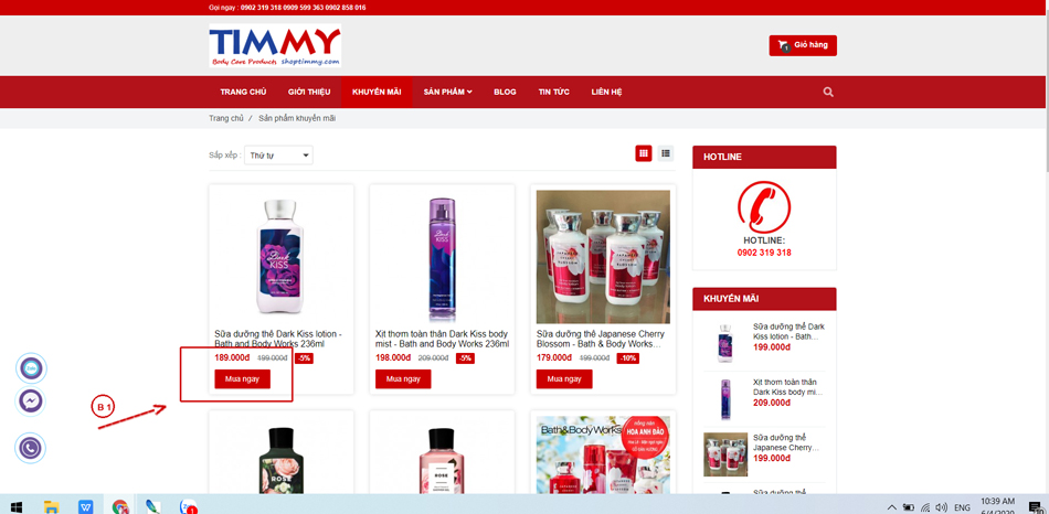 Bước 1: chọn sản phẩm , bấm vào mua ngay